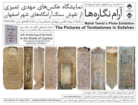 نمایشگاهی ازعکسهای مهدی تمیزی از نقوش و سنگ آرامگاه های اصفهان از ۳  تا ۳۱ اردیبهشت ماه در گالری ۱ موزه هنرهای معاصر اصفهان دایر خواهد شد. این آثار ۵۵ تابلو در اندازه ۵۰ در ۶۰ شامل فیگورها، پیشه ها، اسلیمی ها و ختایی، گیاهان به ویژه درخت سرو برگرفته از پروژه عکاسی، پژوهشی بر سنگ آرامگاه های ایران است که از سال ۱۳۸۰ تا ۱۳۹۳ توسط این پژوهشگر ادامه پیدا کرده است. در حاشیه نمایشگاه نیز کتاب “ در سایه سرو” که نخستین کتاب منتشر شده از پروژه سنگ آرامگاه هاست؛ معرفی می شود.