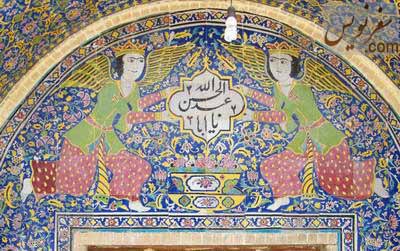 با دیدن عکس آن دو فرشته در بالای درب ورودی به یاد یک حمام قدیمی افتادم که در بازار قیصریۀ اصفهان قرار دارد.طرح تقریباً یکی است!