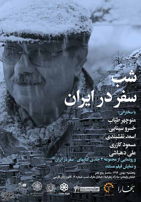مجله بخارا با همکاری بنیاد ملت، بنیاد موقوفات دکتر محمود افشار و گنجینه پژوهشی ایرج افشار شب سفر در ایران را برگزار می کند. خسرو سینایی، منوچهر طیاب، اسعد نقشبندی، مسعود کازری و علی دهباشی سخنرانان این مراسم‎اند. شب سفر در ایران با نمایش فیلمی مستند و رونمایی از کتاب 4 جلدی سفر در ایران منوچهر طیاب همراه خواهد بود.