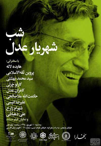 شب شهریار عدل به کوشش مجله بخارا، بنیاد زندهیاد محمود افشار یزدی، بنیاد ملت، مرکز دایرهالمعارف بزگ اسلامی و برخی مراکز فرهنگی دیگر با حضور بزرگانی چون؛ پروین ثقه الاسلامی، سیدمحمد بهشتی، کارلو چرتی، کامران عدل و … به همراه پخش فیلم مستندی درباره زندگی استاد شهریار عدل برگزار خواهد شد.