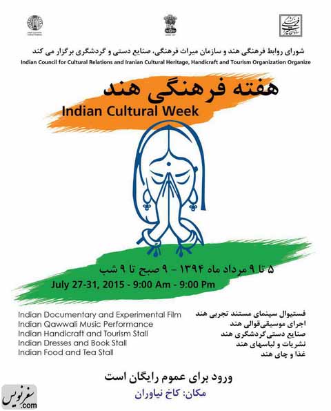 جشنواره «هفته فرهنگی هند در ایران» با همکاری شورای روابط فرهنگی هند و سازمان میراث فرهنگی برگزار میشود. فستیوال سینمای مستند تجربی هند اجرای موسیقی قوالی هند، صنایع دستی هندوستان، نشریات و لباسهای هندی و همچنین چای و غذا از بخشهای مختلف جشنواره هفته فرهنگی هند در ایران است.